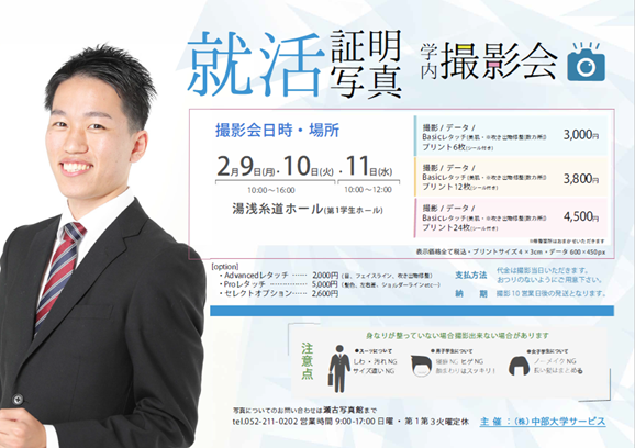 就職活動用証明写真・学内撮影会のご案内(2026年1月)