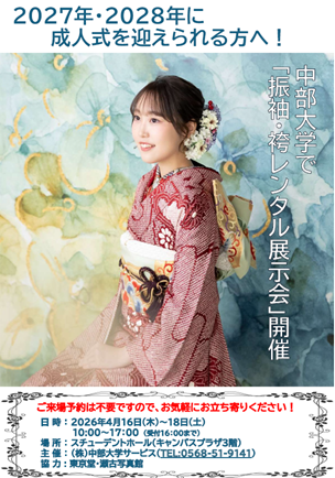 学内「振袖・袴レンタル展示会」開催のお知らせ(2026年4月)